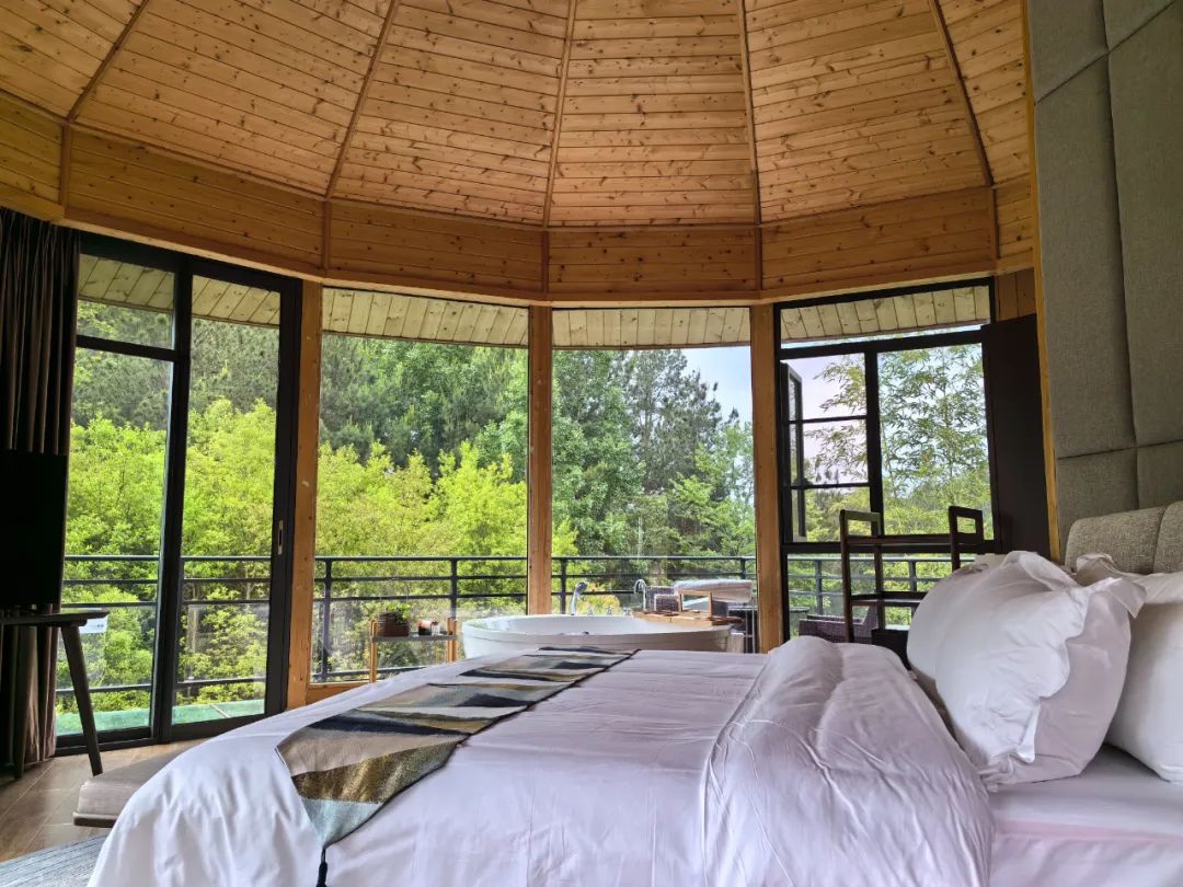 “这是我们打造的住宿业态之一,共有32栋独栋别墅,均依山而建,可以让游客充分感受住在森林里的舒适惬意。此外,我们还有66套泰和贵宾楼客房、8套屯堡汉寨高级客房和10套军旅主题民宿,当前九龙山森林公园共有床位230个,不同的住宿类型足以满足游客多样化需求。”杨司坤说。