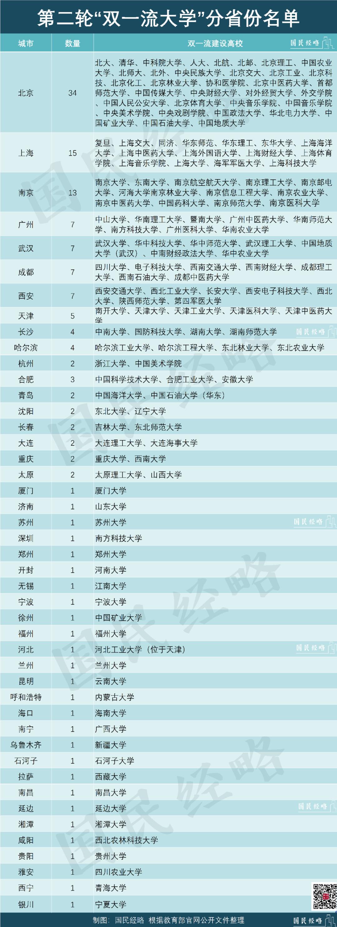 今年初,第二轮双一流大学名单发布,共有147所高校入围,几乎每个省份都至少有1所高校在列。