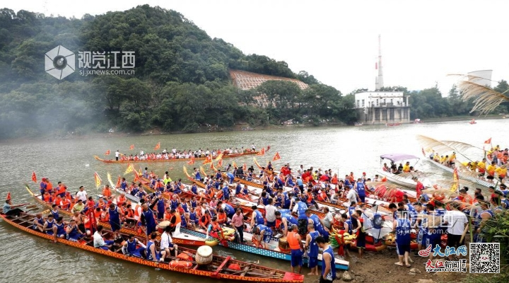 锣鼓擂响,桨楫翻飞……赛龙舟的紧张刺激,受到人们的喜爱。江西自古因水而兴,赣地文化也赋予了“赛龙舟”多元文化特色。如新余分宜等地每到农历五月初一,当地村民会自发组织龙舟活水仪式,迎接端午节的到来。赣州龙南又以杨村龙船赛最具特色,经过数百年的演变,形成了包括祀奉龙神、请龙神、千人宴、扫邪、竞赛、游船、龙神归位、送游船鸭为一体的独特的传统龙舟民俗文化。