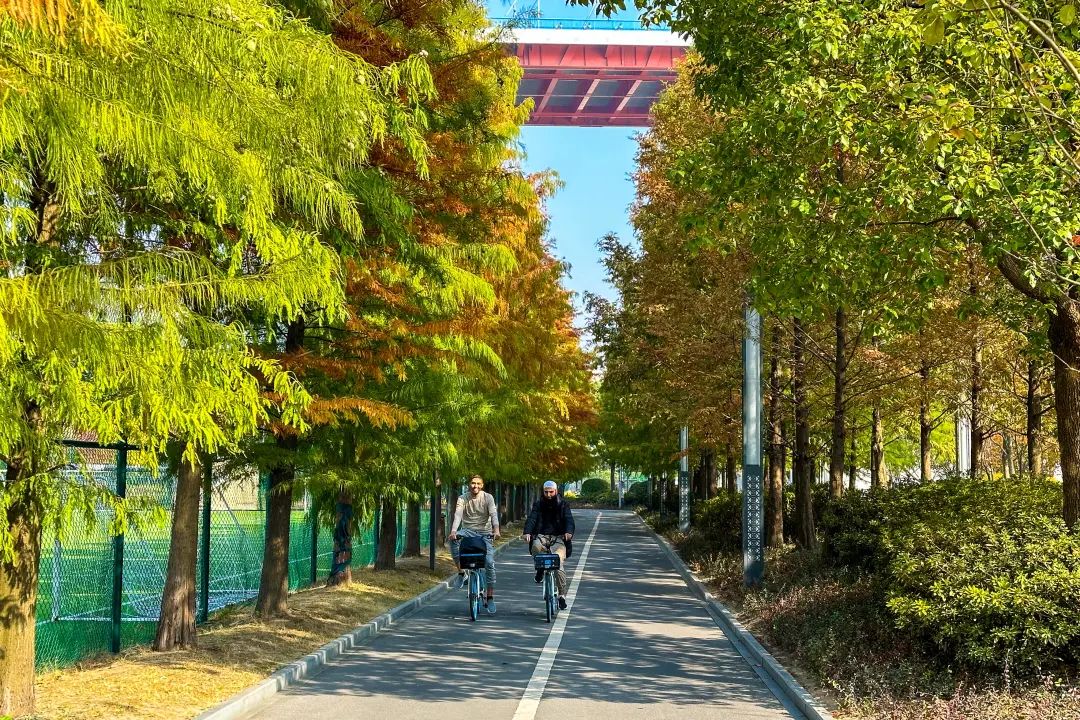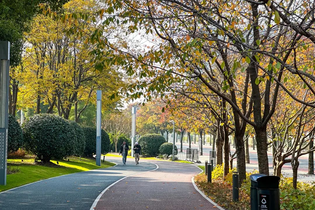 一早,黄浦滨江畔已是人头攒动。沿着滨江步道漫步,秋日的阳光洒在江面上,波光粼粼。沿江风光带景色宜人,绿树成荫,鲜花盛开。市民们或晨练、或跑步、或骑行,享受着温暖的秋日阳光。
