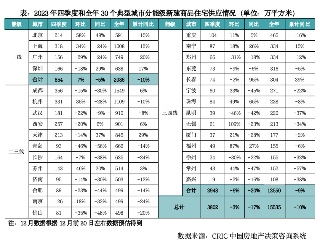 附表1:2023年1-11月120个典型城市分能级新建商品住宅供应情况(单位:万平方米)(略)