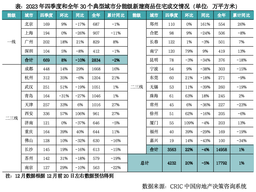 附表2:2023年1-11月120个典型城市分能级新建商品住宅成交情况(单位:万平方米)(略)