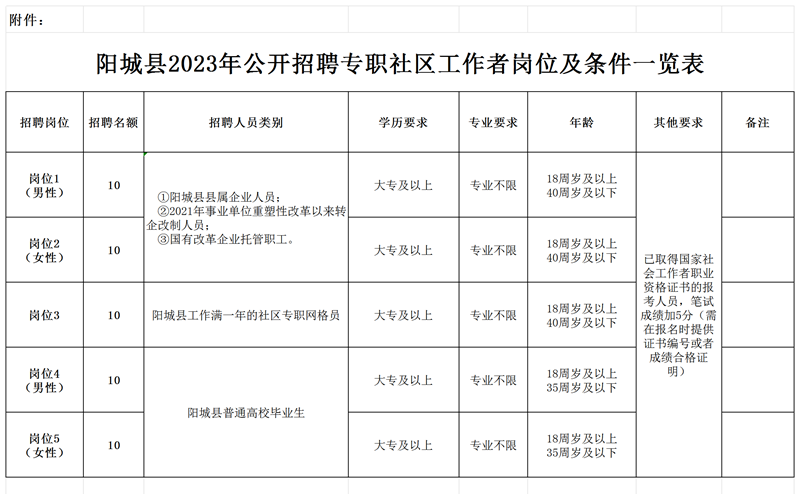 为进一步提升社区治理能力,夯实社区治理力量,根据县委、县政府《关于加强党建引领规范“村改社区”工作实施方案的通知》(阳发〔2022〕19号)精神,经研究决定,为我县部分社区公开招聘专职社区工作者,现公告如下。