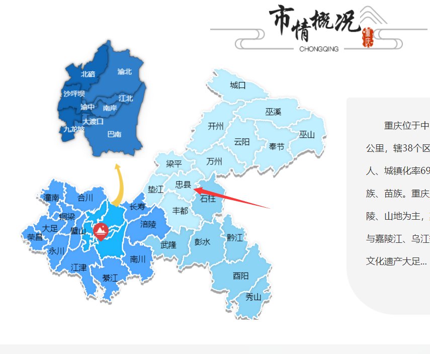 【导语】:忠县是重庆单独的一个区县,不属于任何一个其他区。忠县位于重庆市中部、三峡库区腹心地带,距离主城210公里。唐贞观八年唐太宗赐名忠州,民国二年设忠县,是中国历史上唯一以“忠”字命名的州县城市。