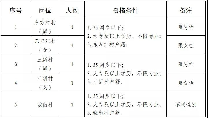本次招考村后备干部5名;社区后备干部30名,其中男性18名,女性8名,定向社工专业2名(不限性别),定向退役军人2名(不限性别)。