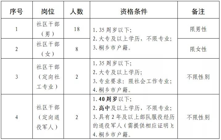 3.户籍条件:报考村后备干部需梧桐街道行政村户籍并只能报考户籍所在村后备干部;社区后备干部、合同制工作人员均需桐乡市户籍(户籍归属截止到2021年7月31日)。