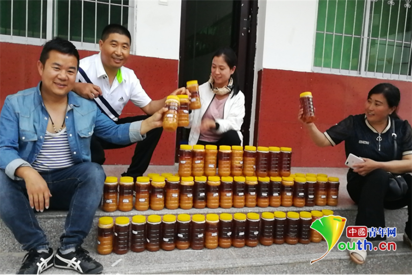 村民展示收获的蜂蜜 谢勇 摄
