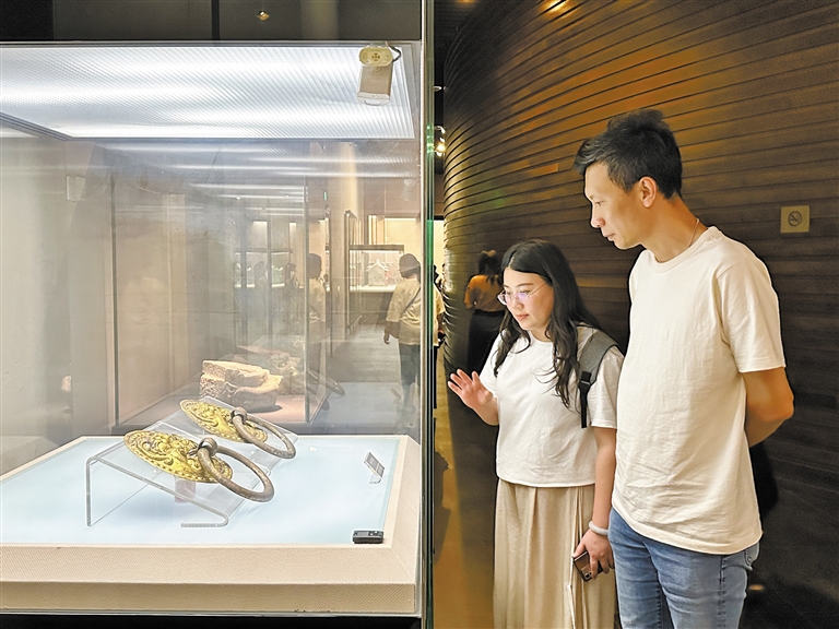 5月16日,游客在西安博物院观赏鎏金铜铺首。 记者 陈志涛摄