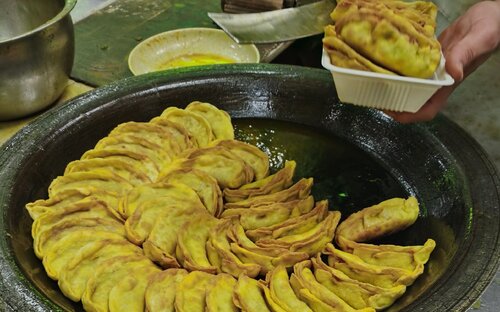 鸭油酥烧饼是南京的传统小吃,是南京夫子庙的传统名点,是金陵秦淮八绝之一,是用鸭油和制的酥烧饼,也是南京特色美食之一。南京人爱吃鸭,连鸭油都不放过,鸭油酥烧饼选料、制作、火功、质量均很讲究,烧饼层次分明,入口又香又酥,余味久存。烧饼外皮烤成诱人的金黄色,里头一层层的油酥薄如棉纸,一咬下去酥松得不得了,每一口都尝得到鸭油的香味!来到南京,有机会一定要尝一尝鸭油烧饼,其他地方还真的吃不到。