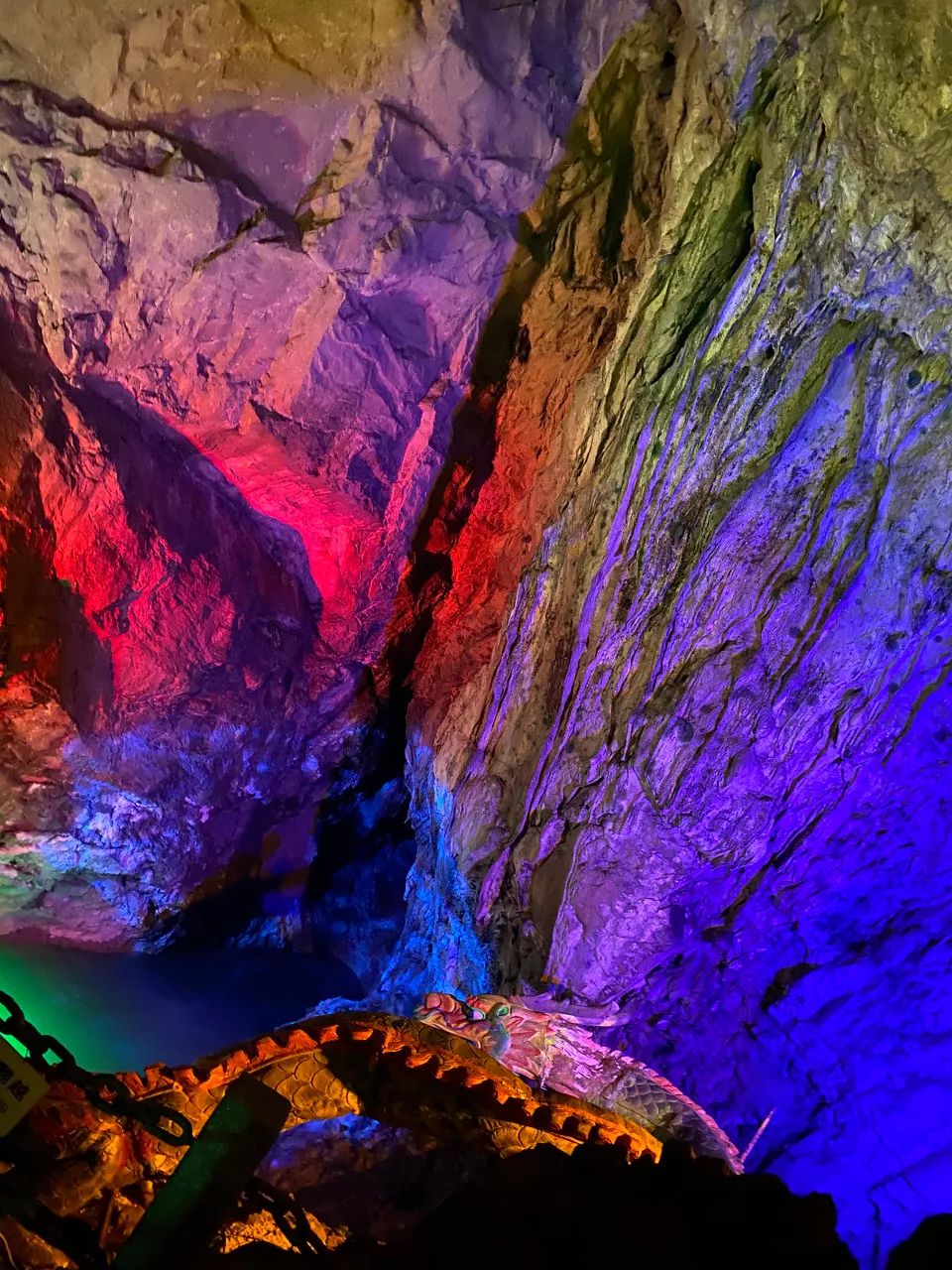 来到这里,除了惊叹,似乎所有语言都显得苍白。洞内似乎不分白昼,灯光照耀在洞内的石头上,如梦如幻,像是进入了另一个世界。步行观赏了旱洞,便可乘船观赏水洞。随着小船的前行,眼前的景色也不断变化。