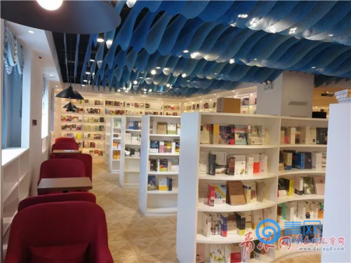 海蓝色的波浪天花板和海鸥吊饰、白色巨舰和巨浪漩涡状的书架、船头造型的舞台、捕获图书的渔网……离海最近的书店就是它!栈桥书店旅游类书籍、地图、交通旅游图9折优惠, 在此基础上可享受青岛市文化惠民消费券