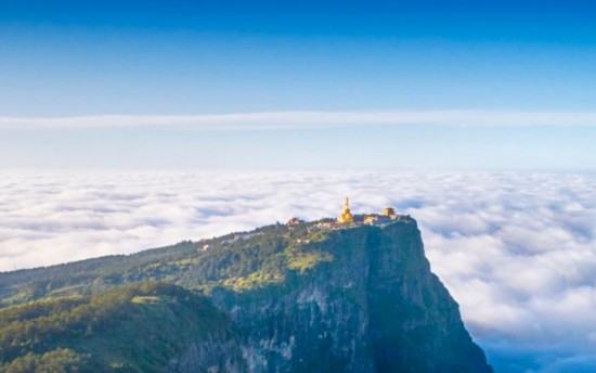 峨眉山作为中国西部唯一的世界双遗产地、中国十大避暑名山,森林覆盖率94%以上,“一山有四季,十里不同天”,自古就有“峨眉天下秀”之美誉。炎炎夏日,可以在峨眉山欢乐水世界释放尖叫,可以在《只有峨眉山》戏剧幻城体验人生大戏和“云下集市”;可以徜徉在报国寺、伏虎寺、清音阁等中低山景区,享受“天然氧吧”带来的洗肺之旅;在万年寺、仙峰寺、洗象池、雷洞坪等中高山景区,沉浸于20℃左右的清凉,伴着晨钟暮鼓净心养身;登峨眉山,还可以与全山3700多种高等植物、2300多种野生动物和谐与共,享受与大自然亲密接触之美妙。(图:《云上金顶》 余进摄)