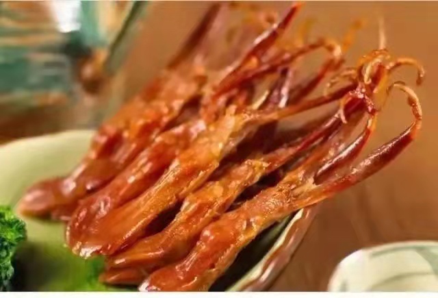 温州鸭舌是一道闻名遐迩的地方特色小吃。鸭舌经过卤制后风至半干,在口中细嚼,韧性十足。温州发言称鸭舌为“鸭赚”,系取其谐音讨口彩之意。