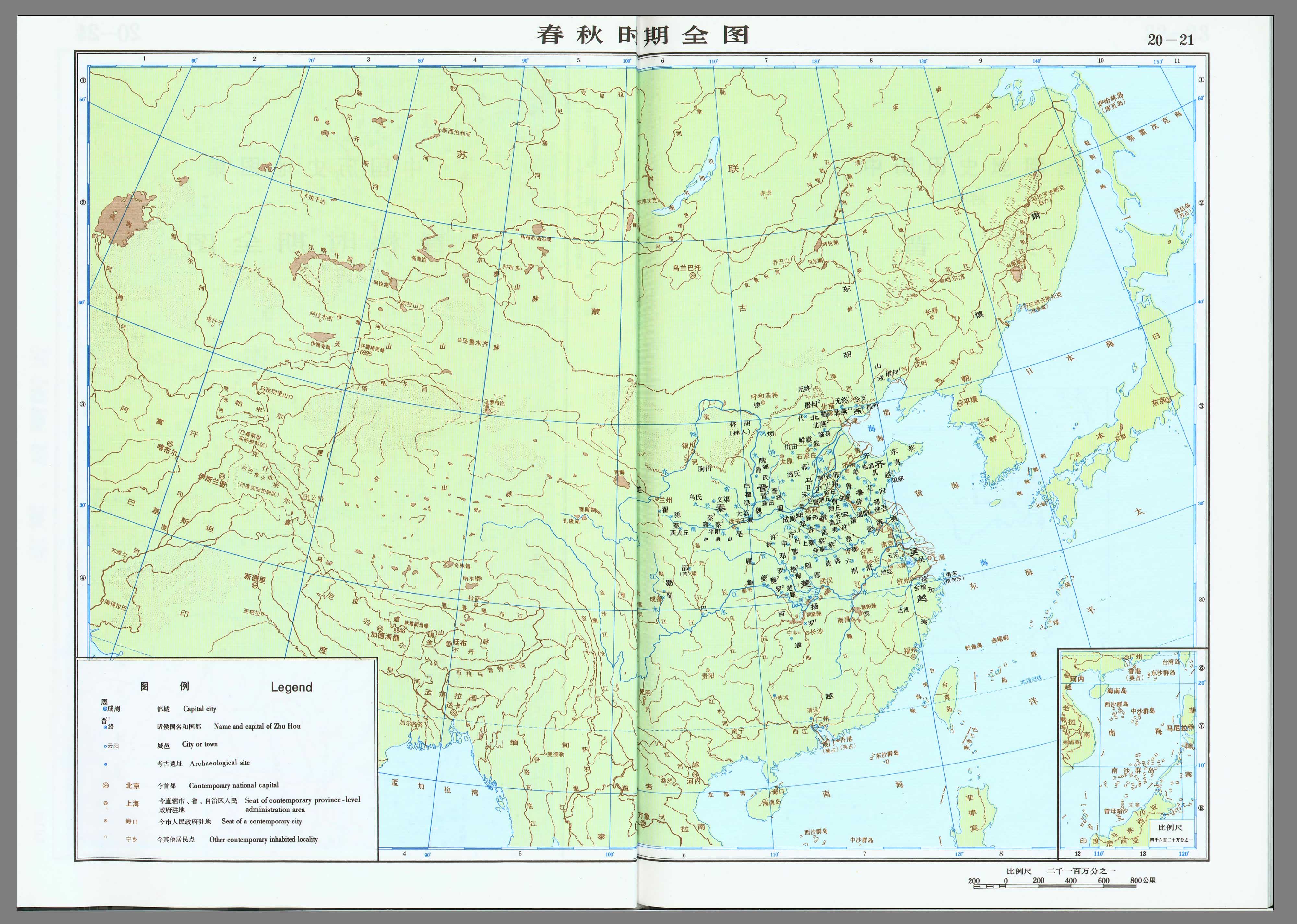 2、春秋历史地图画出全国范围内见于记载的重要诸侯国、部族、都邑、山川泽薮、关塞、长城等和位于边区的一些考古遗址。