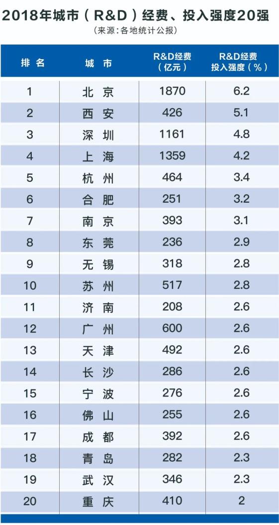 由于2019年部分城市R&D科技经费投入数据尚未公布,这里梳理了2018年部分城市的数据。