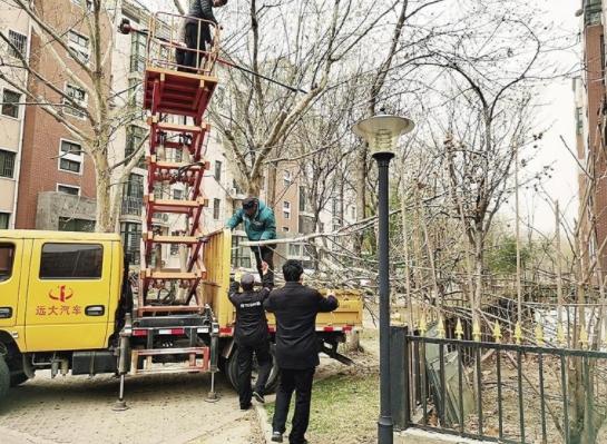 ▲热心居民主动修剪小区树木。