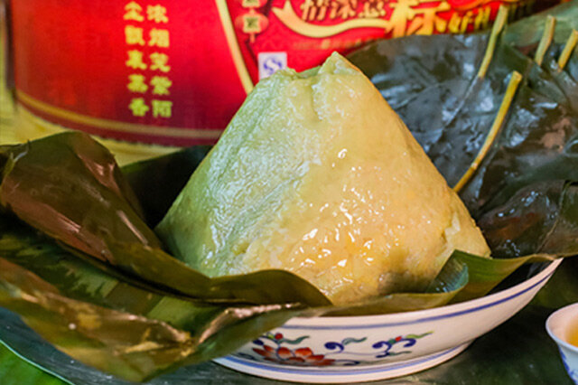肇庆裹蒸不仅是肇庆的一种传统小吃,人称“茶点王”,为国家地理标志保护产品,也是广东省肇庆市著名的美食特产。肇庆裹蒸以糯米、脱衣绿豆、半肥猪肉为原料,用冬叶包裹为枕尖状后大火煲煮而成。肇庆裹蒸的传统工艺包括浸洗冬叶、淘洗糯米、去绿豆衣、腌制肉馅、包扎裹蒸、烧煮裹蒸等步骤,腌制肉馅的五香调味料是用适量的精盐、曲酒、花生油、白芝麻和五香粉等调配而成的。裹蒸有多种吃法,既可以煮好后直接食用,也可以加入切碎的芫茜、葱、炒香的芝麻粉以及适量花生油和酱油,还可以蘸上蛋浆后用猪油煎至金黄再食。肇庆裹蒸制作技艺已...被列入广东省非物质文化遗产名录。 【 详细>>】