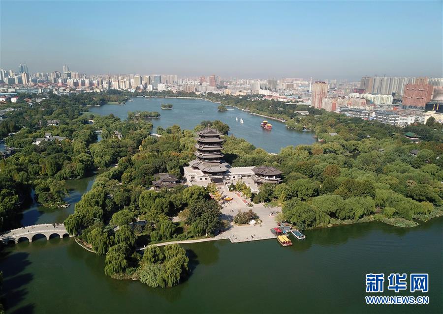 这是免费开放的济南市大明湖景区(9月30日无人机拍摄)。 近年来,山东积极推进国有景区免费开放工作,截至目前,山东实现免费开放的国有景区已达286处。 新华社记者 徐速绘 摄