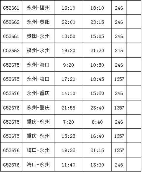 华夏航空永州进出港时刻表