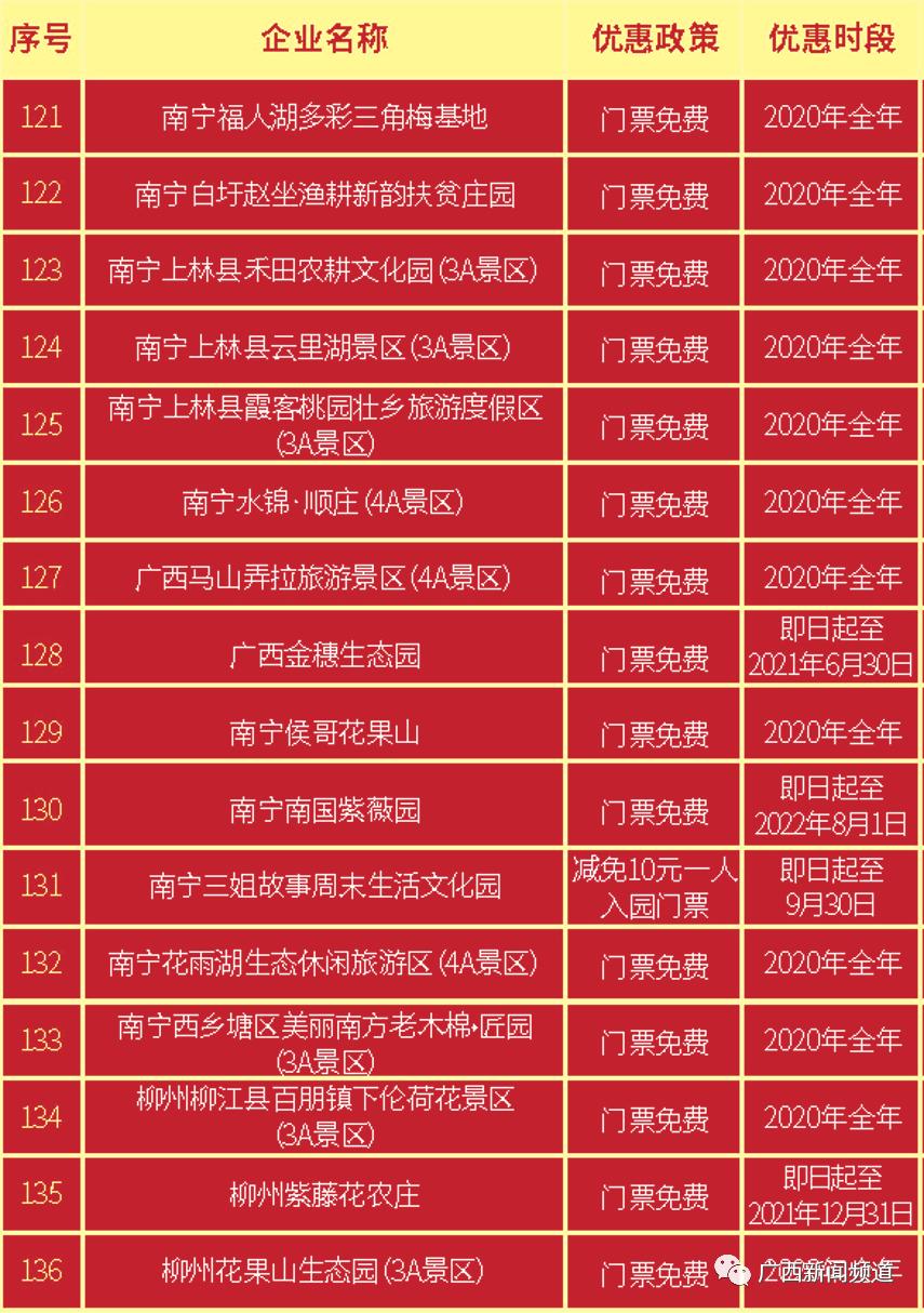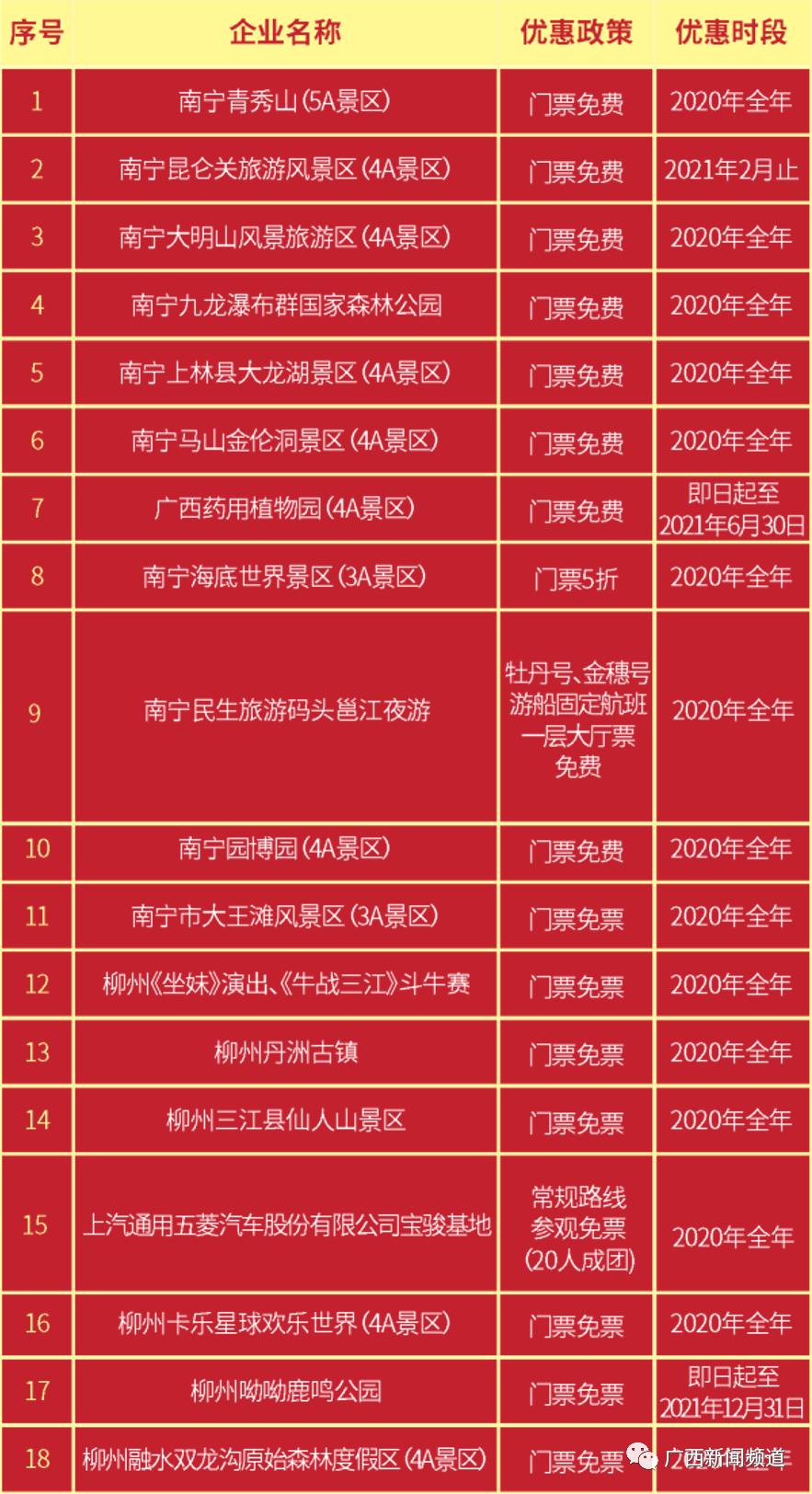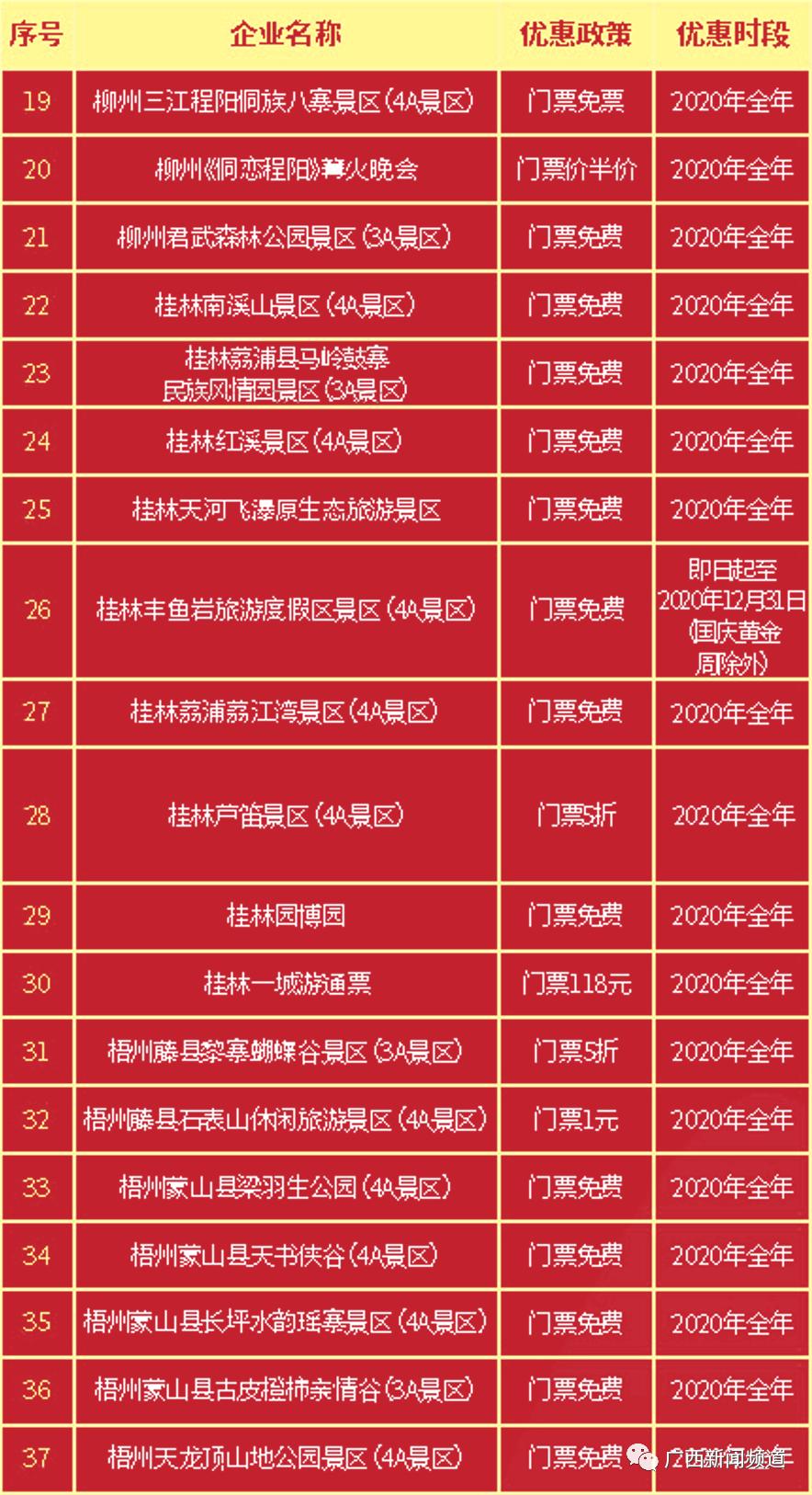 广西壮族自治区居民2年不限次免门票游览全市A级景区。
