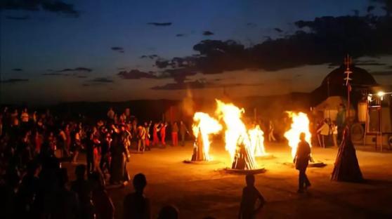 一堆堆橘红色的篝火亮起,同满天繁星相映成辉
