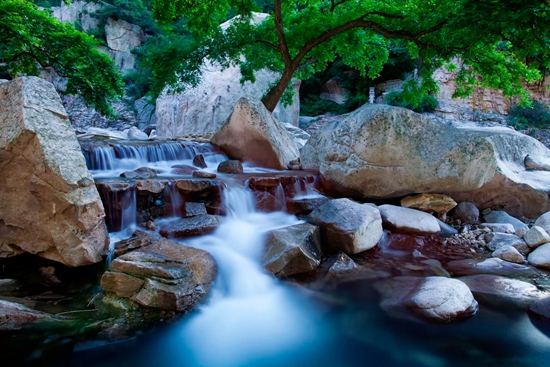 夏日的九如山,绿色覆盖,如翡如翠,植被最为茂密,人称“葱茏九如山”。当此之际,层峦高树把烈日挡在山外,让山里阴凉尽透,一股股凉气从密林藤萝中穿透而出,送来阵阵寒意。更有群瀑喷雾,溪水起沫,涧壑生风,处处隔绝外部热浪,造就出远离暑气的低温小气候。所以这里又有“逍遥避暑地,清凉九如山”的美誉。