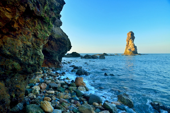 这里依山傍海,风景秀丽,地理位置显著,是国家首批5A级旅游景区。“朝看黄海日出,暮观渤海日落”说的就是仙境蓬莱阁。蓬莱阁冬暖夏凉,夏季平均气温24.6℃,清晨可以看日出,傍晚还可以到海滨浴场游泳。