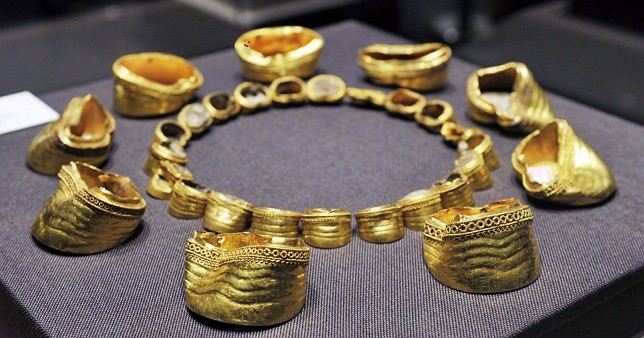这2000多件出土文物中,有金面具、金带、圆形金饰、喇叭形金饰等30多件金器。从金面具来看,与广汉三星堆遗址的青铜面具在造型风格上基本一致,说明两者之间应有一定的传承关系。