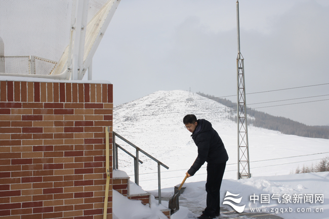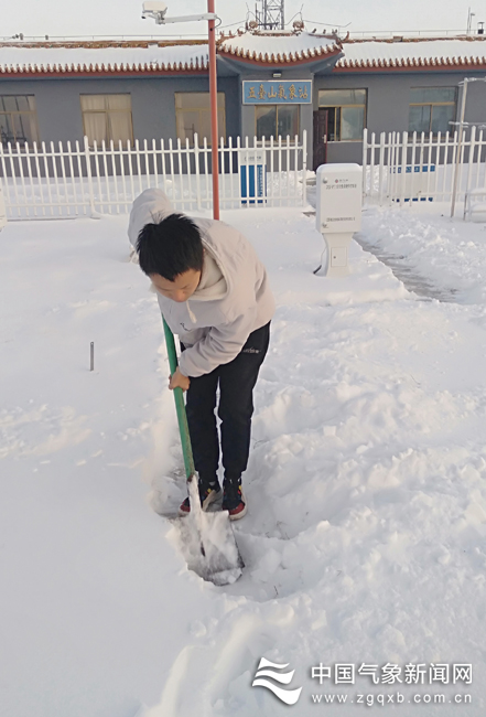 山西五台山,1月5日9时,2020年第一场雪如约而至。此次降雪持续19个小时,降雪量15.2毫米,雪深达15厘米。五台山气象站地处华北之巅,海拔2208.3米。气象观测站所在山间,每逢大雪封山时,通往外界的山路堆满厚厚的积雪。值班人员还要顶着大风进行仪器设备维护。图:刘正东 文:武雅丽