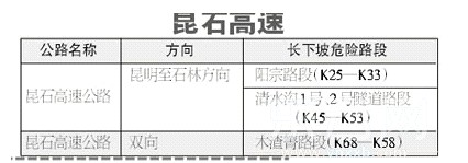 昆明收费站、王家营收费站、呈贡服务区、马金铺收费站、九龙池收费站,易发生拥堵。
