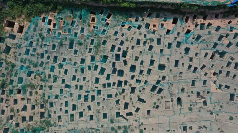△西安南郊一建筑工地发掘的战国古墓群,密密麻麻似蜂巢。