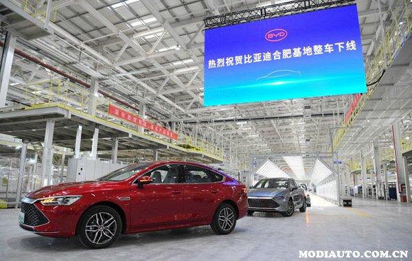合肥工厂位于比亚迪CEO王传福的家乡安徽合肥,工厂项目总投资达150亿元,规划的年产能为15万辆,目前已投产的车型有比亚迪秦PLUS DM-i和驱逐舰05。据悉,合肥工厂总共分为三期建设,最近二期产线也即将投产,三期产线全数投产后合肥工厂的年产能可达132万辆/年。