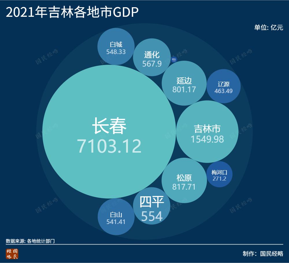 但2021年,吉林市GDP仅为1549亿元,不到长春(7103亿元)的1/4。