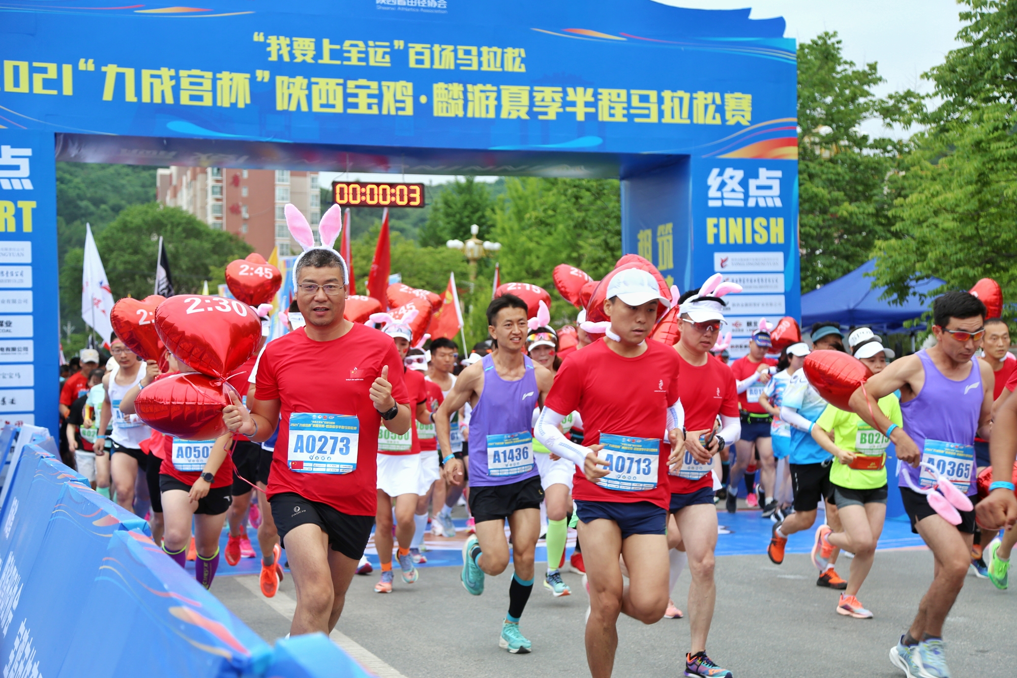 6月13日,作为陕西省“我要上全运”百场马拉松系列赛收官之战的2021“九成宫杯”陕西宝鸡·麟游夏季半程马拉松赛在麟游县城开赛。经过激烈角逐,岑万江、陈鑫、魏玉杰跻身半程马拉松男子组三甲,杨花、赵颖、朱丹丹获得女子组前三名。