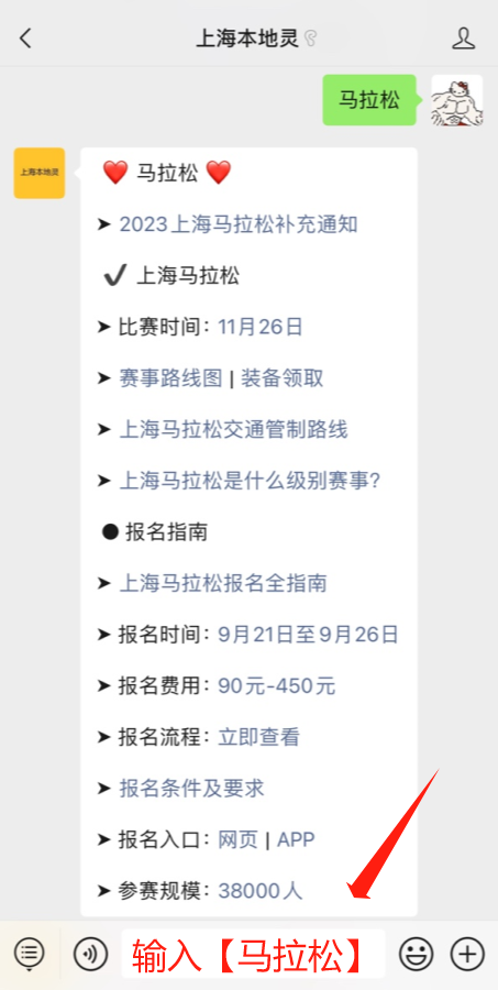 小编提示:微信搜索【上海本地灵】微信公众号,对话框回复【马拉松】即可获取2023年上海马拉松比赛报名时间、比赛时间、报名须知、竞赛规程等信息!