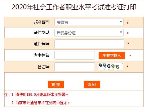 安徽·蚌埠2020年社会工作师考试准考证打印入口已开通!