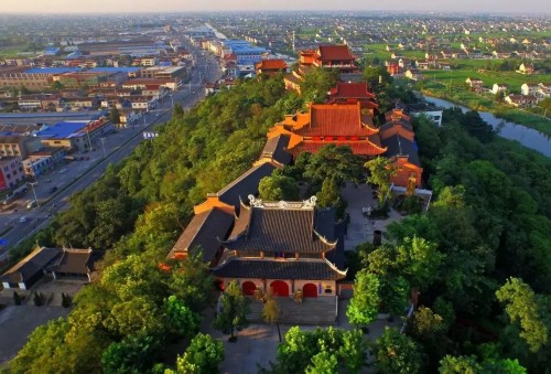 全国唯一一个在岳飞生前就建造的祠堂,里面能看到世间已非常罕见的岳飞手书《前出师表》之石刻。当年,南宋皇帝赵构连发12道金牌急招岳飞回临安,一部分中原百姓跟定了岳飞,便随他一同南下,来到了长江之畔,岳飞预言:此地风调雨顺,此后800年无兵灾水灾无旱灾。便劝追随他而来的众多青年男女在此自行婚配,创建新的家园。这些人便成了靖江的第一批移民。