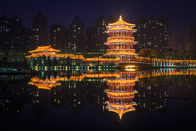中华石鼓园是宝鸡市的一张新的城市名片,是陕西夜景最美的地方之一,石鼓阁和青铜器博物院便是这里的两大标志性建筑,除外园内还有周文化墙、祭天敬祖广场、石鼓山廊桥等景观。中华石鼓园风光秀丽迷人,即便在夜幕降临之时也是分外美丽,其中的博物院夜景、廊桥夜景、石鼓阁夜景等景色更是让游客流连忘返,尤其是作为宝鸡独有文化符号的廊桥,它让每一个从廊桥上走过的人都记住了宝鸡的夜景。 【 详细>>】