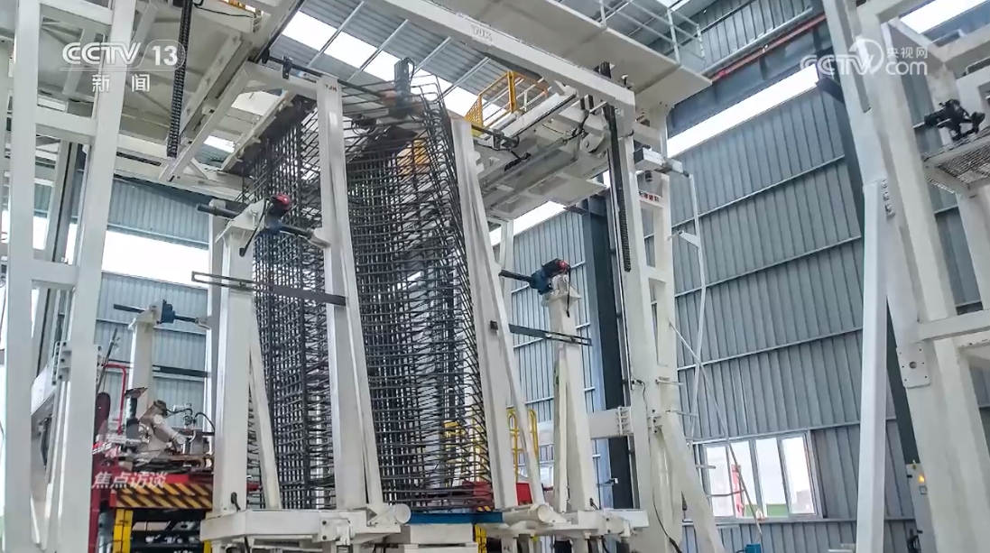 王辉:“通过手机扫描能够数字化显示钢筋所有的生产信息,钢筋智能生产的设备把原材料钢筋做成单元件,通过这个设备的组装形成了钢筋片体。像这样的片体5号塔要用3万个,大概分成了3200组,每一组钢筋用的部位都不一样,为了精准识别它用在哪里,每一组要给它一个识别信息,做一个二维码,通过手机扫描就可以知道它要用在哪个地方。”
