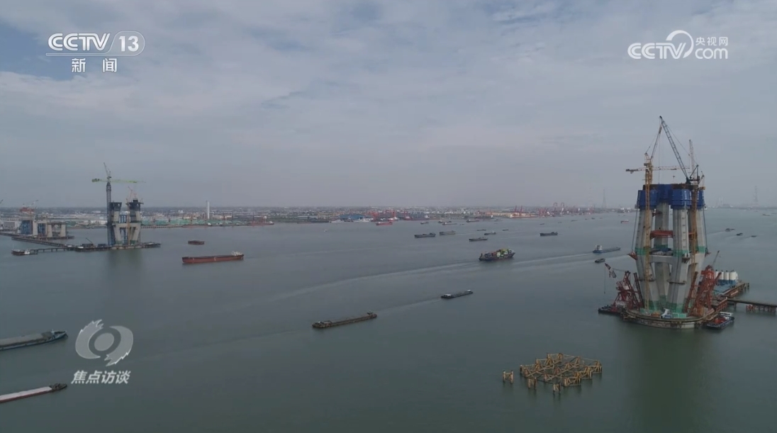 中铁大桥勘测设计院副总工程师郑清刚:“长江下游是最繁忙的航道,深水航道宽度有900米,为了保障通航安全,要求主跨要一跨跨过通航水域才能满足这个要求。”