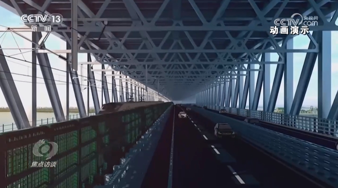 而说常泰长江大桥是个超级工程,不仅因为它有“跨度最大”的这个头衔,更因为它拥有多种功能,在这座上下两层的桥上,上层为六车道高速公路,下层为两线铁路和四车道普通公路,这也是长江上首座“三位一体”的跨江大桥。那么,多种功能的设计又是出于什么样的考虑呢?