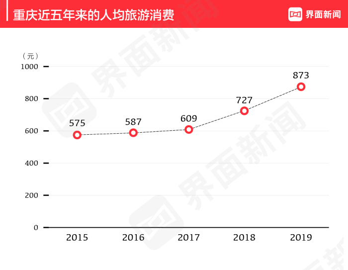 重庆以873元的人均消费从去年的第一掉到第三名,消费水平同比增长了20%。从重庆近五年的人均旅游消费趋势可以看出其人均消费逐年递增,2018年抖音让重庆一夜爆红,人均消费的增速也随热度上升而加快,增幅达19.38%。每个人的心里都对重庆有着不一样的印象:或许是解放碑、朝天门、洪崖洞诉说的城市往昔;或许是重庆老火锅、酸辣粉、重庆小面带来的味觉刺激;也许是李子坝遗址公园留下的战争痕迹;也可能是倒映在江水中五彩斑斓的灯光;更或许是高低不一的建筑、从楼中穿梭而过的轻轨打造的“赛博朋克”,但是不得不承认的是重庆是一座让你流连忘返的城市。