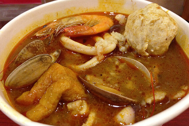 厦门沙茶面是厦门的著名传统小吃,属于闽菜小吃。沙茶面的美妙在于汤头,以沙茶酱熬成的沙茶汤浓稠香郁,面则选用闽南的油面,将油面与青菜于开水中烫熟捞入碗中,趁热浇入沙茶汤。最后可由自己喜好添加佐料,豆制品、大肠、米血、腰花等等,再淋上一小勺辣油,吃起来口味香辣扑鼻,痛快淋漓。厦门沙茶面汤色红亮,口味咸鲜香辣,营养搭配合理。厦门沙茶面入选由中国烹饪协会主办“中国地域十大名小吃”福建榜名单,还被福建餐饮协会评选为“福建十大名小吃”。 【 详细>>】