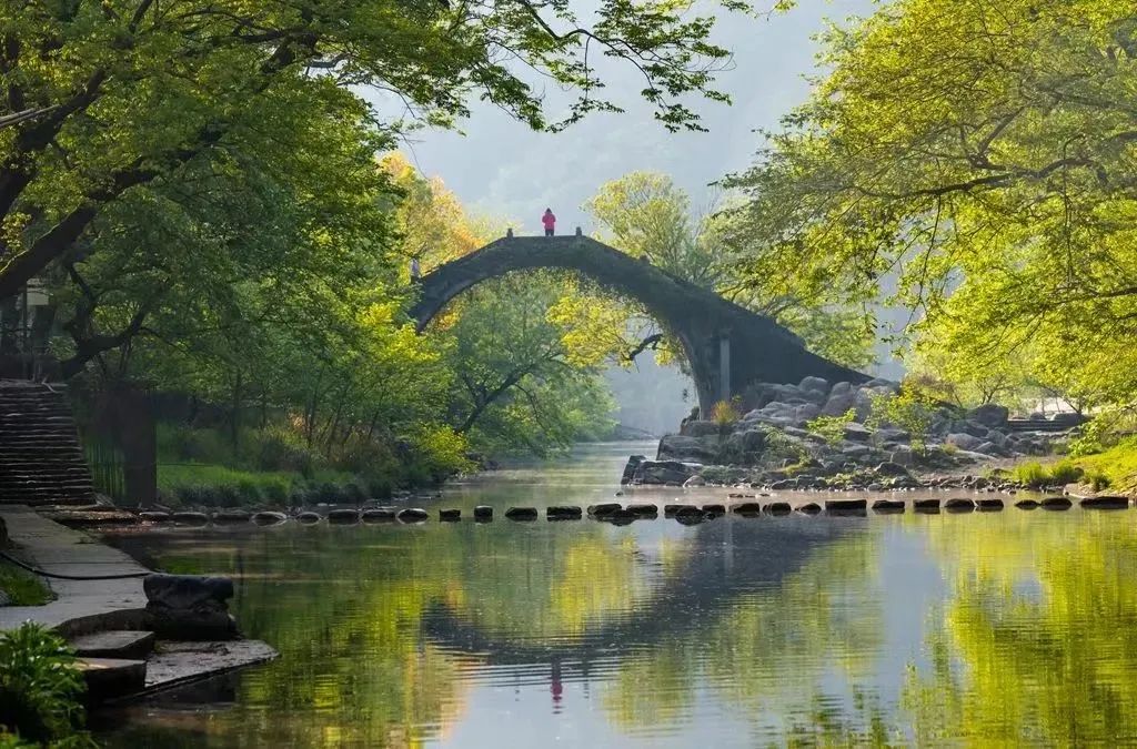 阳明古镇,藏在深山里的宝藏村落,原始古朴,风光优美,被誉为宁波最美山村,山间云雾缭绕,青山绿水中错落着古朴的民居,清澈小溪穿村而过,还有一座百年古桥十分灵动,犹如置身于绝美的山水画中,享受避世古村的静谧清幽。