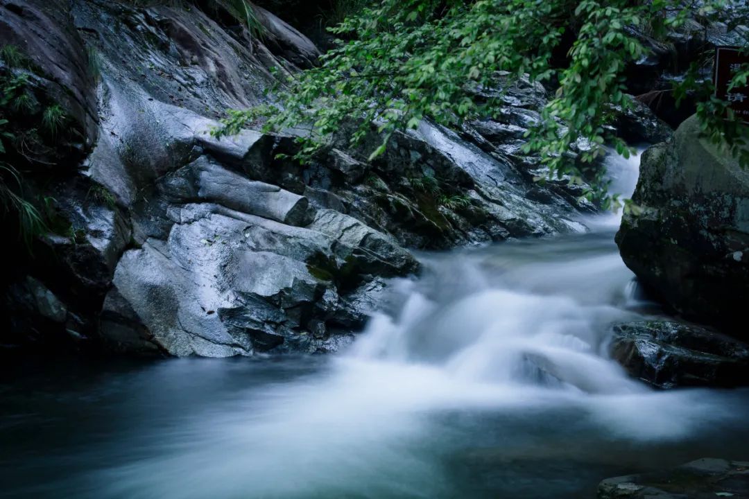 浙东小九寨,景区山峦连绵叠嶂,翠竹林木繁茂葱茏,空气清新,仿佛踏进了天然大氧吧中,在山中徒步游玩,亲近自然,领略秀丽山水中的无限野趣,溪水清澈,奇石错落,自然风光旖旎迷人。
