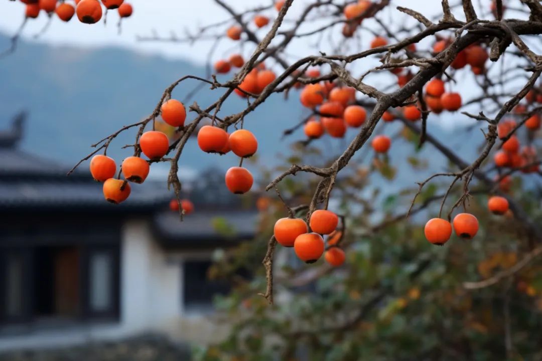 柿林村,因山上柿树成林而得名,200余亩的柿子树,遍布村里村外,房前屋后,在苍翠的山峦与古朴民居间,闪耀着透红的鲜艳,古朴的石板路,斑驳的石墙,透露着沧桑古老的气息,俏丽惹眼的秋色,让人眼前一亮。