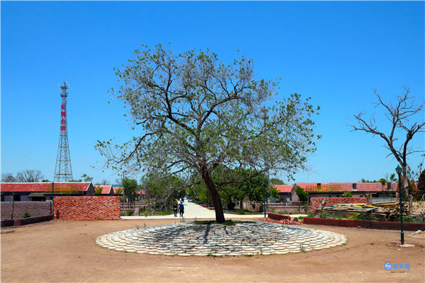 穿过孤岛汽车站向北走去,道路中央傲然挺立着一棵老榆树,高大挺拔、树叶婆娑。据介绍,这棵老榆树是1956年建场拓荒时保留下来的一棵自然生长树木,至今已有近70年的树龄。一路向北,道路两侧建设有“乐住小院”、“回家民宿”等,王燕燕解说道:“两侧民宿是由当年兵团战士、知青宿舍改建而成的,外观都保留了当时原貌,两侧的室内陈设风格各异,每到旅游旺季,这里可谓‘一房难求’。”