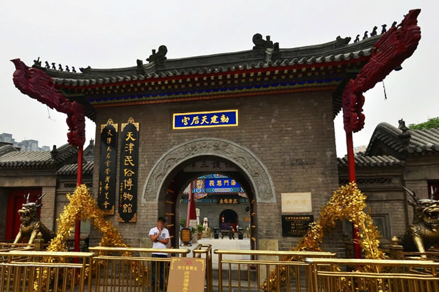 天后宫建于1326年(元泰定三年),原名天妃宫,俗称娘娘宫,历经多次重修,是天津市区最古老的建筑群,也是中国现存年代最早的妈祖庙之一。天后宫是宗教建筑,建筑群坐西朝东,面向海河,由山门、牌坊、前殿、大殿等组成,属典型的中国传统庙宇式建筑。每年天后诞辰,以天后宫为中心举行大型民间酬神庙会活动,沿河船户、周边信众亦纷纷到来,各地商贾云集,造就了天津最著名的商业街——宫南宫北大街(今古文化街)的繁荣。 【 详细>>】
