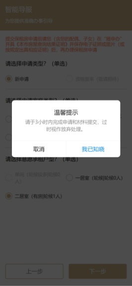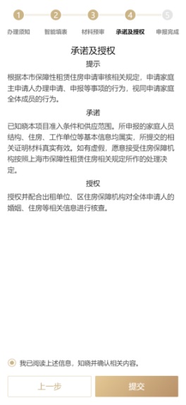 ①有房申请:若有房源,请根据提示选择“申请类型”“申请家庭类型”“意愿承租户型”等信息,如实填写个人信息、上传申请材料,阅读承诺及授权信息后即可点击“提交”。