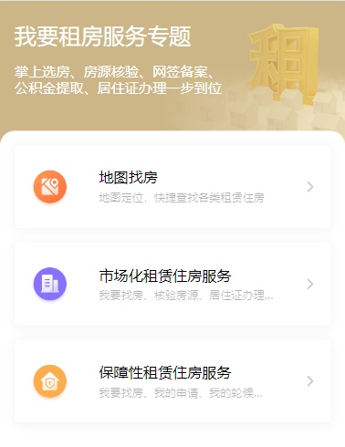 全市房源“一键查询”,市场化租房、保障性租赁住房“一站式办理”,包括在线核验、挂牌发布、地图找房、预约看房、保障性租赁住房申请、轮候,以及租赁合同网签备案、提取公积金支付房租和居住证办理等全流程服务。